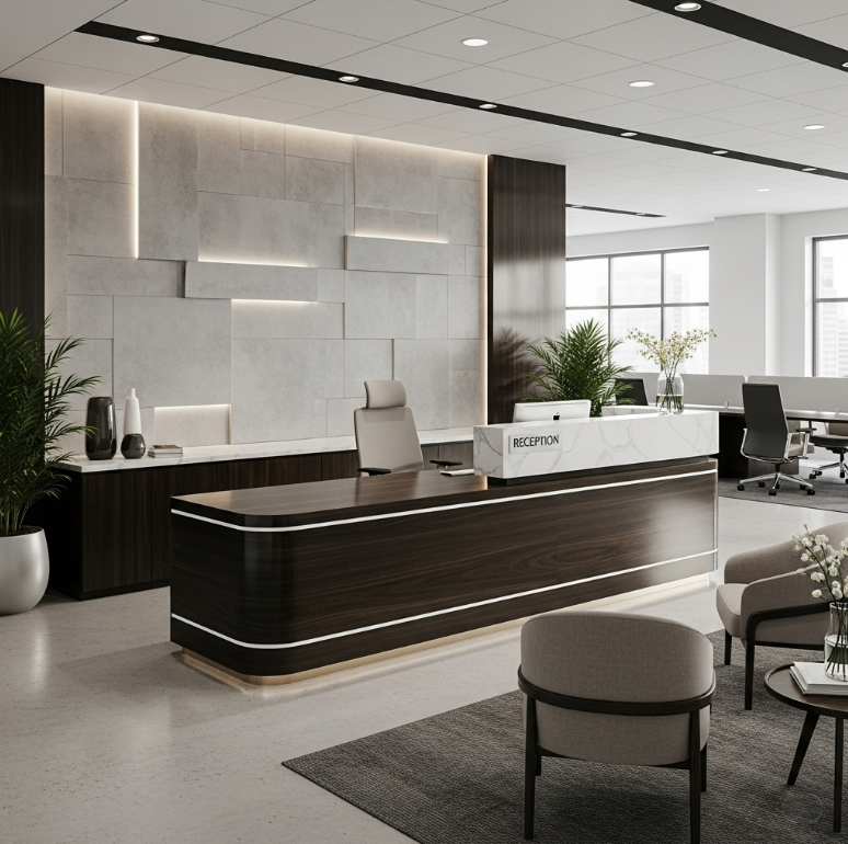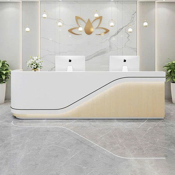Quầy lễ tân đẹp bề mặt phun sơn kiểu dáng mềm mại tích hợp đèn led HB230
