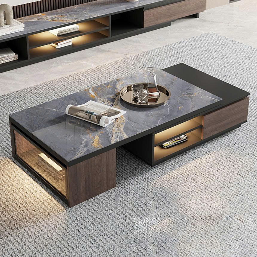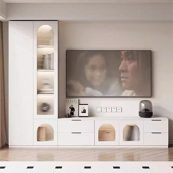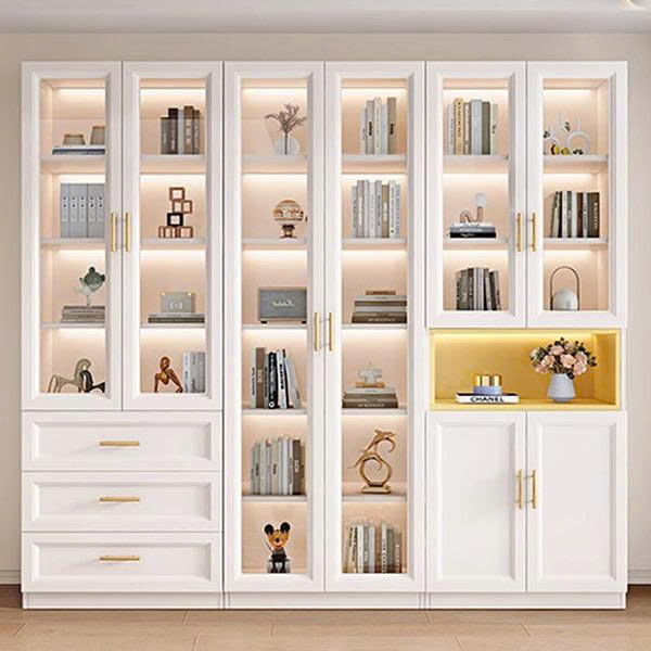 Tủ Cánh Kính 6 Tầng Tích Hợp Đèn LED Decor Phòng khách, Phòng Làm Việc -HH301
