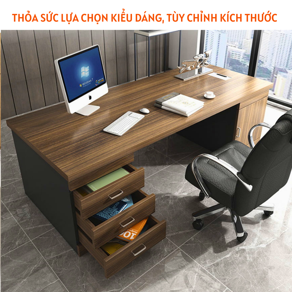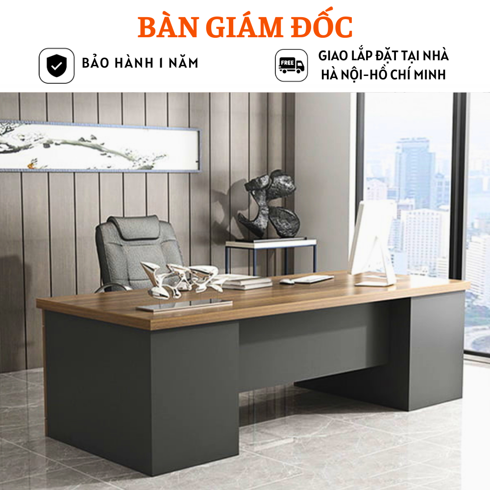 Bàn giám đốc, bàn lãnh đạo thiết kế sang trọng, hiện đại HB302 là lựa chọn thông minh cho phòng làm việc lãnh đạo sang trọng, đẳng cấp. Bàn làm việc giám đốc có kiểu dáng đơn giản, thiết kế tối ưu hóa công năng phần kiến tạo không gian ngồi làm việc rộng rãi, thoải mái nhất cho người sử dụng. Chất liệu gỗ công nghiệp MDF cao cấp phủ Melamine bề mặt là yếu tố quyết định đến chất lượng vượt trội cũng như vẻ đẹp xuất sắc của mẫu bàn giám đốc này.