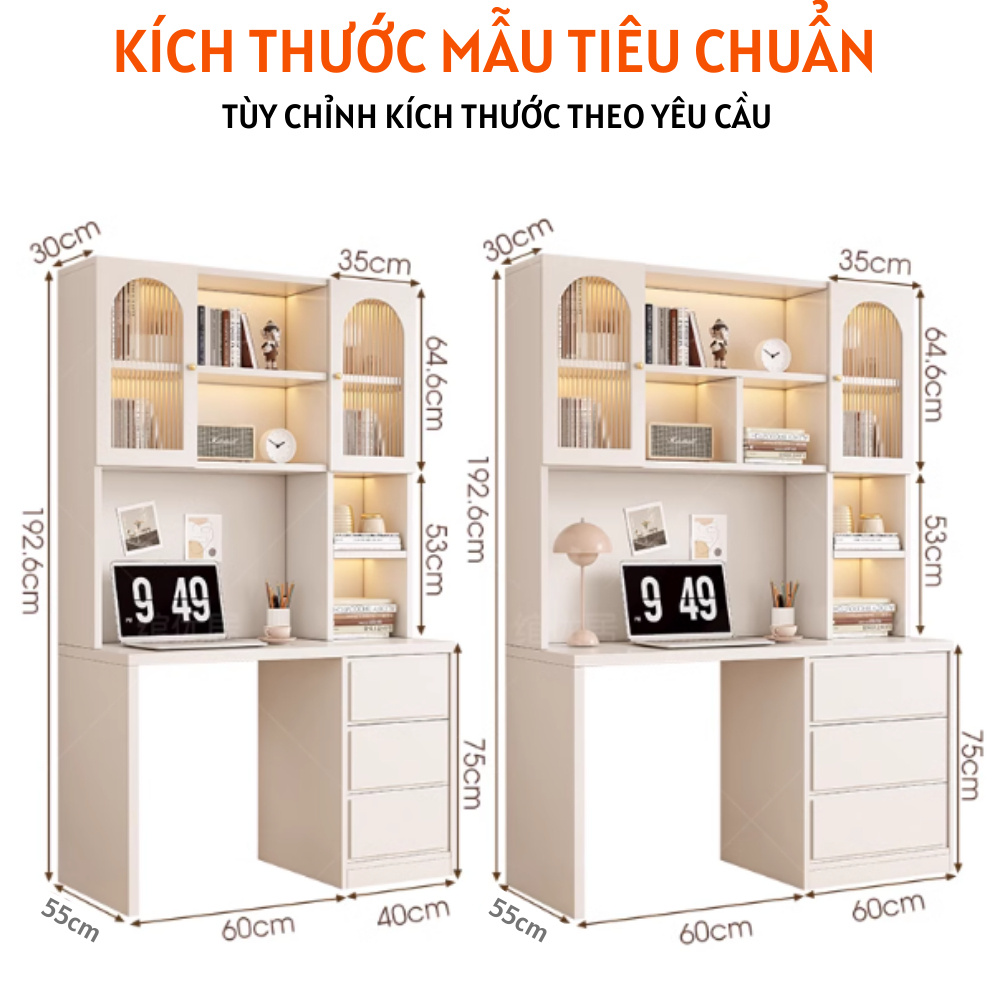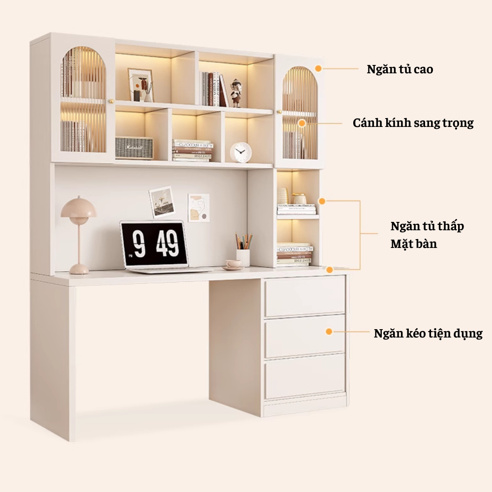 Bàn học,bàn làm việc có giá sách thiết kế mới cánh kính hiện đại – HH808
