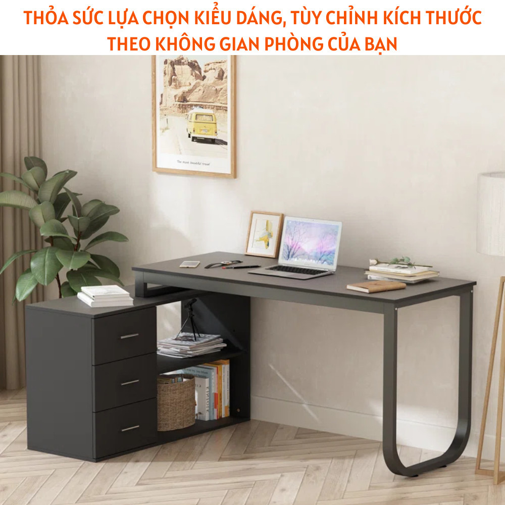 Bàn Làm Việc Chân Sắt Mặt Gỗ Đẹp Có Thể Tùy Chỉnh Hướng Theo Góc Làm Việc – HH801