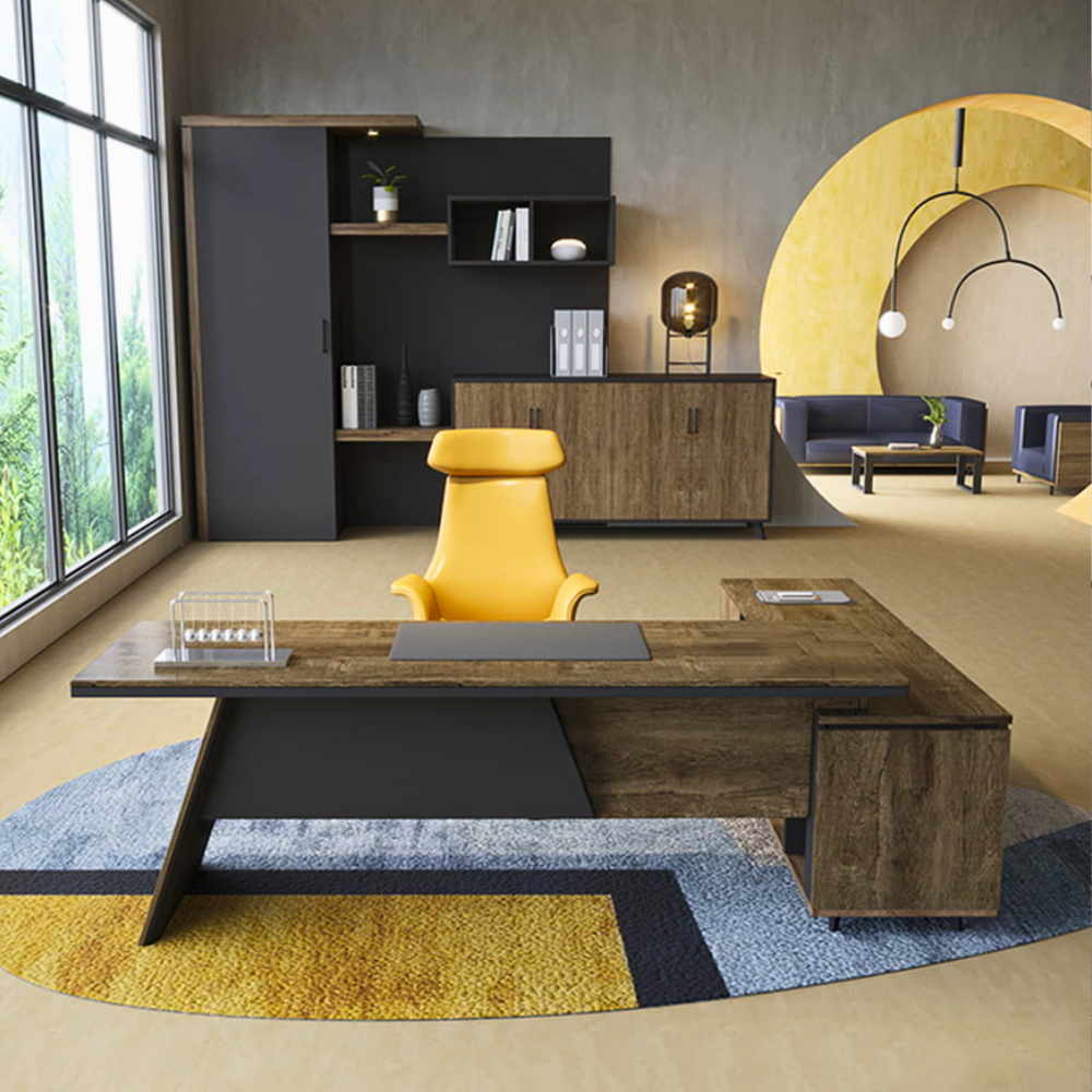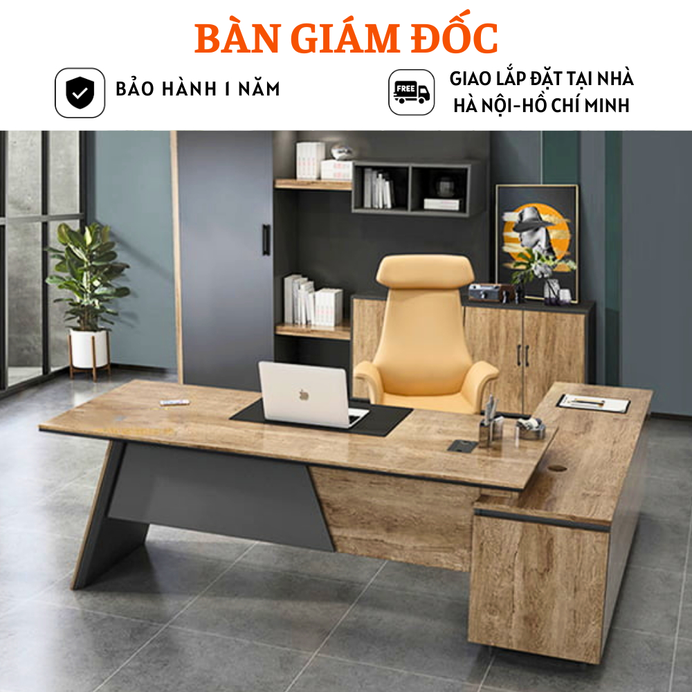 Bàn lãnh đạo gỗ MDF thiết kế độc đáo, ấn tượng HB309 là một trong những thiết kế độc đáo đang dẫn đầu xu hướng nội thất văn phòng hiện nay. Sản phẩm được làm từ chất liệu là các loại ván MDF cao cấp chịu lực tốt, hạn chế cong vênh ngồi làm việc vô cùng lý tưởng. Bề mặt bàn giám đốc được phủ Melamine vân gỗ nhẵn bóng mang tính thẩm mỹ cao. Chỉ cần kết hợp với chiếc ghế lãnh đạo bằng da cùng một số món nội thất văn phòng khác là khách hàng đã sở hữu ngay một không gian.