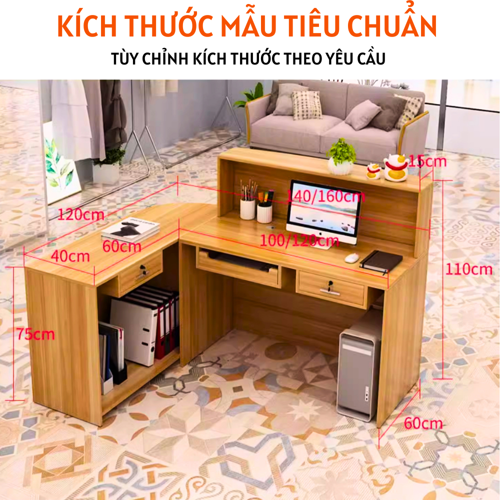 Bàn lễ tân gỗ phong cách hiện đại HB222 xứng đáng là lựa chọn hàng đầu của mọi vị khách khi đến với Heading Home. Kiểu bàn lễ tân gỗ hình chữ L cung cấp không gian sử dụng và lưu trữ thoải mái cho người dùng. Với 3 kích thước khác hàng, Heading Home tin rằng bạn sẽ chọn lựa được mẫu bàn lễ tân gỗ thích hợp nhất với cửa hàng của mình.