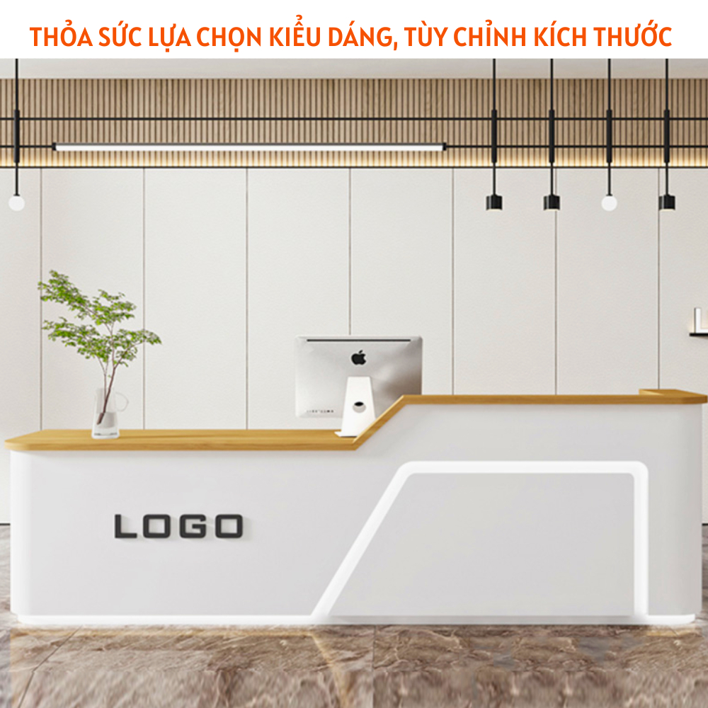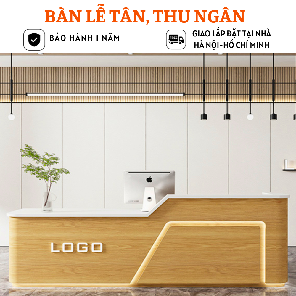 Bàn lễ tân hiện đại bằng gỗ công nghiệp bo cong mặt cạnh, kết hợp đèn led – HB223