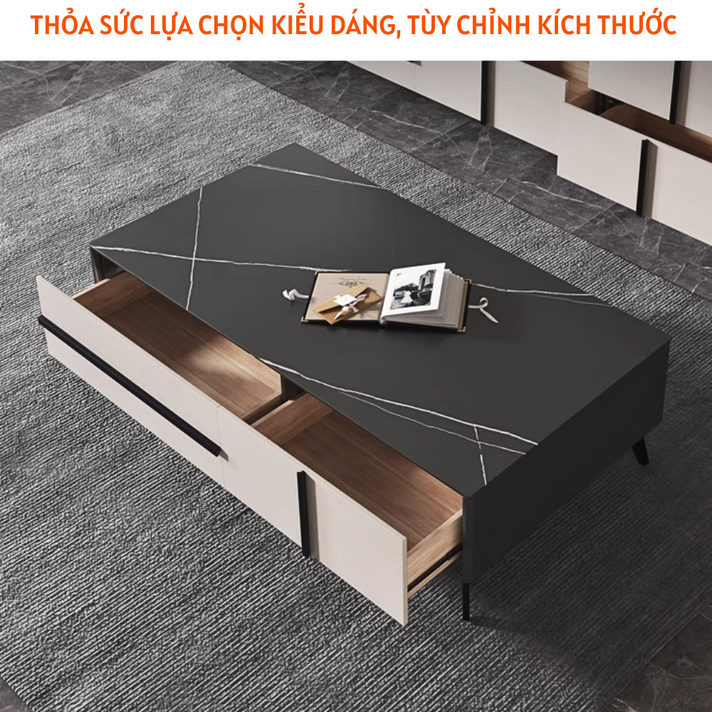 Bàn trà, bàn sofa thiết kế hiện đại mặt bàn vân gỗ giả đá sang trọng – HH906