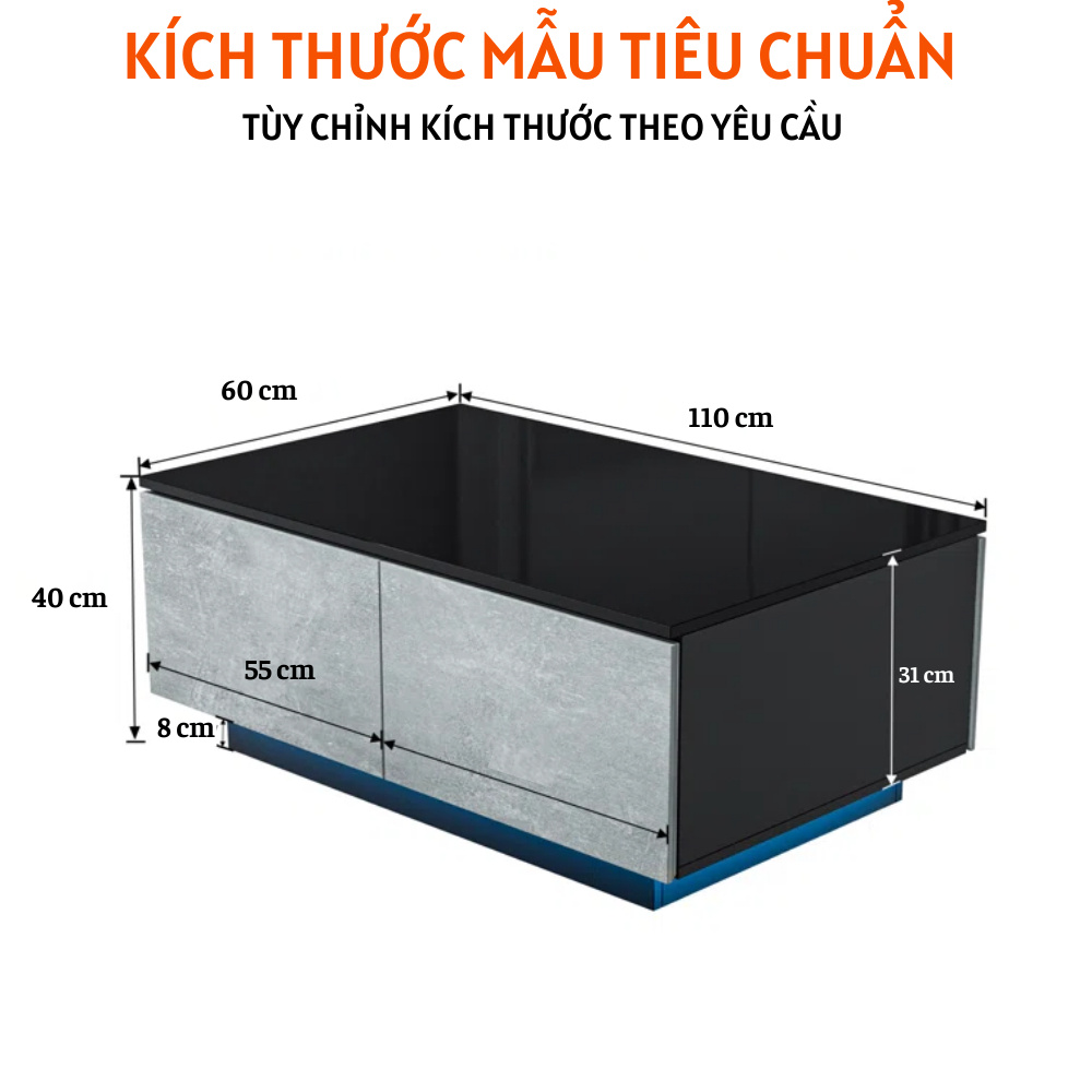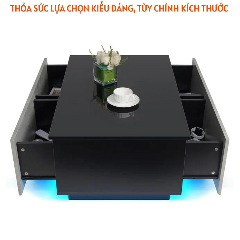 Bàn trà,bàn cafe gỗ MDF hiện đại tích hợp đèn led nổi bật không gian sống – HH903
