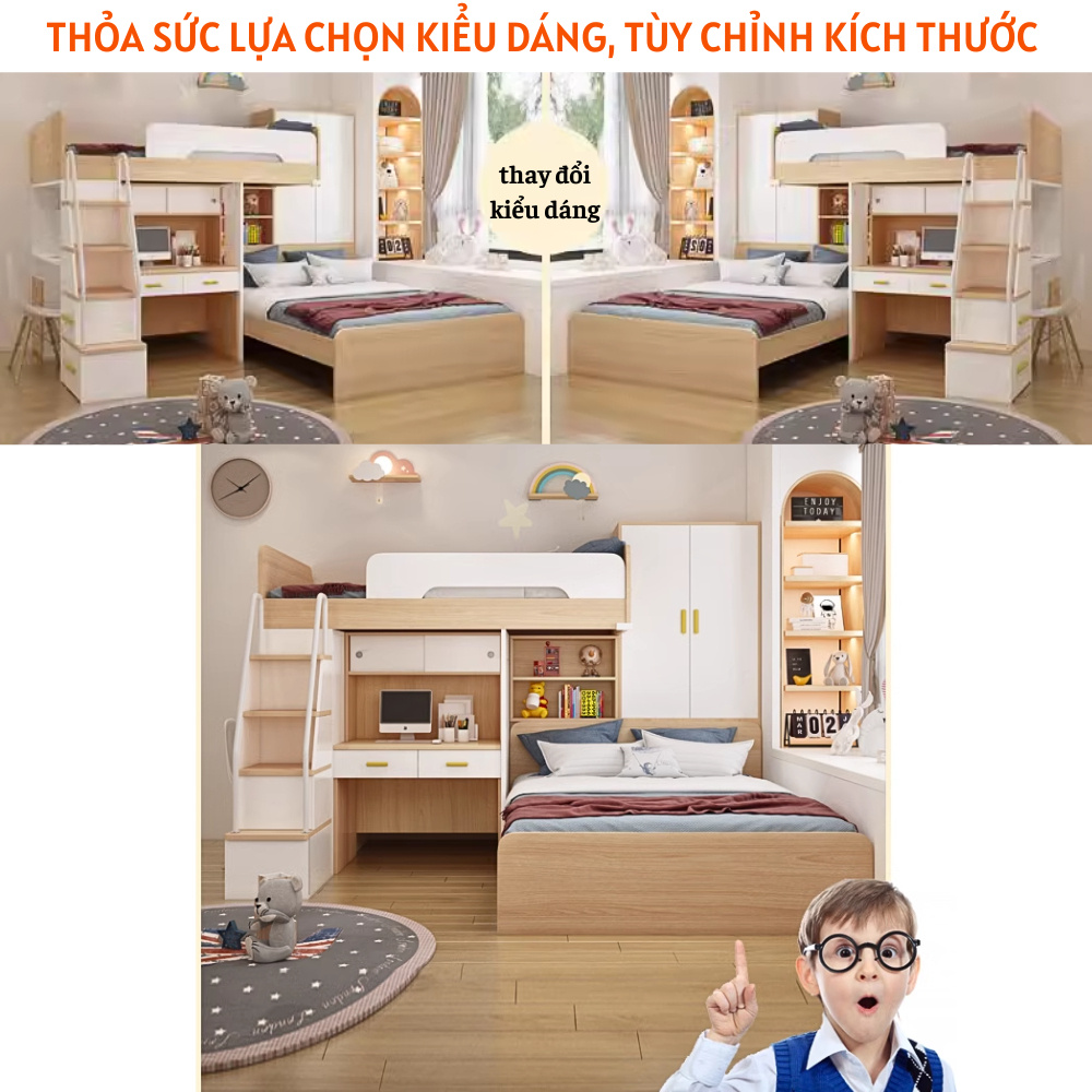 Combo Giường tầng cho bé bằng gỗ thiết kế đa năng – HH1205