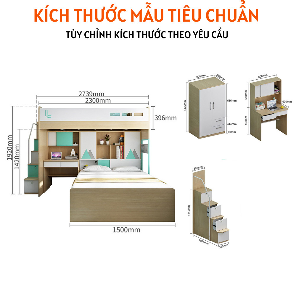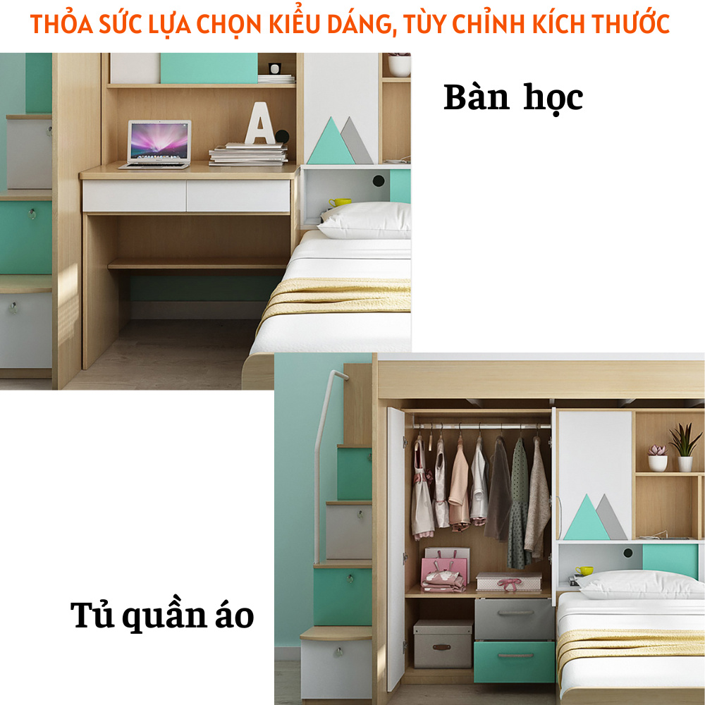 Combo sản phẩm giường tầng bằng gỗ cho bé thiết kế thông minh tích hợp nhiều công năng – HH1206