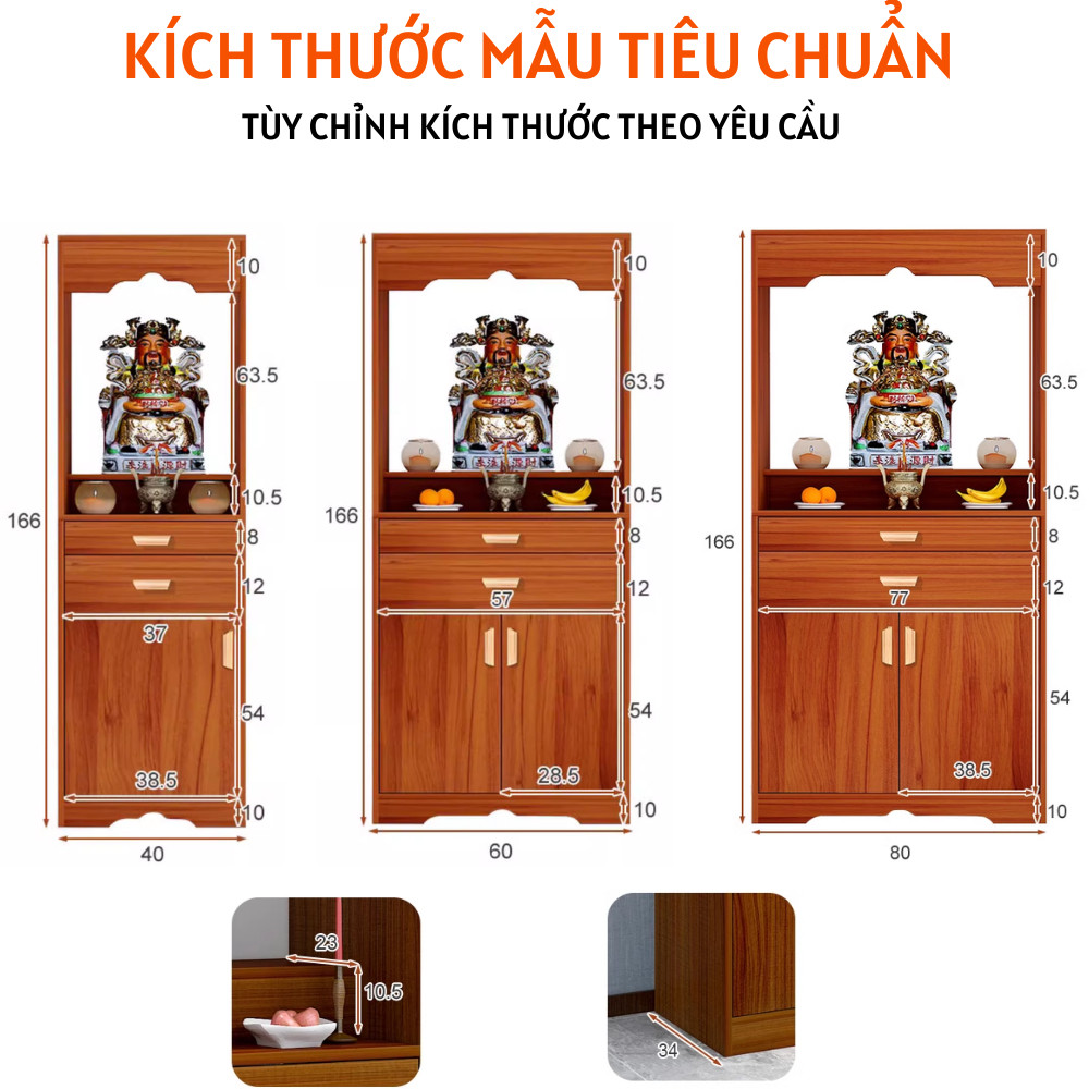 Trong cuộc sống hiện đại ngày nay, bàn thờ tổ tiên kiểm tồn và tỏa sáng như một biểu tượng của tình yêu và tôn kính đối với tổ tiên. Và đặc biệt, mẫu tủ bàn thờ đứng gỗ công nghiệp của chúng tôi đang trở thành sự lựa chọn ưu tiên hàng đầu của nhiều gia đình. Sản phẩm có các ngăn kéo và kệ để bạn có thể lưu trữ và trưng bày những đồ vật linh thiêng và quen thuộc của tổ tiên. Bên cạnh đó, tủ bàn thờ còn được trau chuốt tỉ mỉ với các hoa văn và chi tiết tinh xảo, mang đến một vẻ đẹp truyền thống và độc đáo.