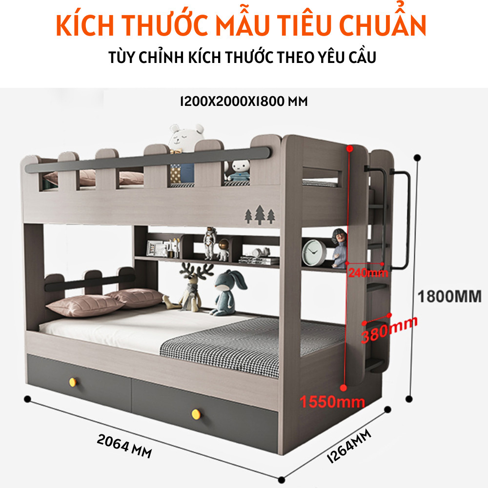 Giường 2 tầng cho bé bằng gỗ công nghiệp MDF xanh chống ẩm – HH1204 nhận được nhiều lời khen từ phía các bậc phụ huynh khi lựa chọn giường cho con mình. Sản phẩm giường 2 tầng cho bé cung cấp bởi Heading Home đáp ứng được mọi nhu cầu như sự tiện lợi, thẩm mỹ và tiết kiệm diện tích sử dụng. Nếu bạn yêu thích mẫu giường này thì đừng chần chừ gì mà hãy nhanh tay sắm ngay cho bé con nhà mình nha!