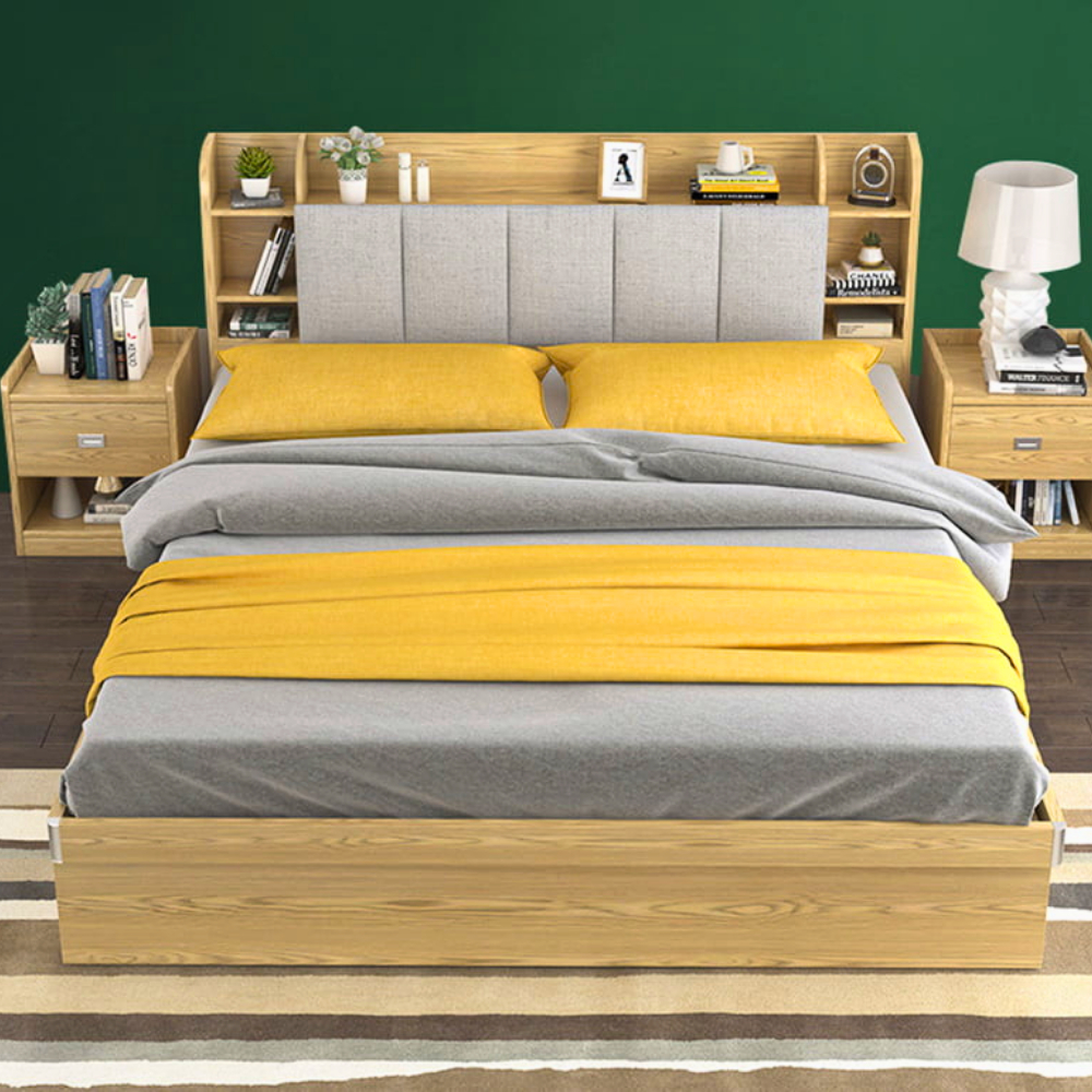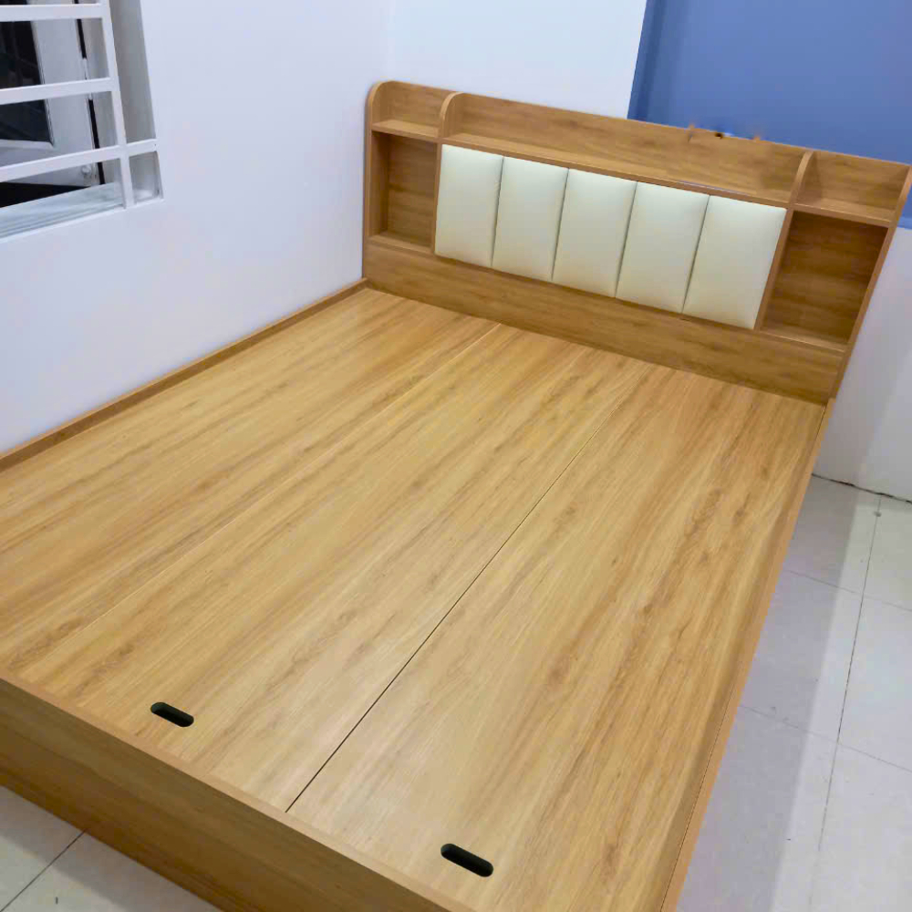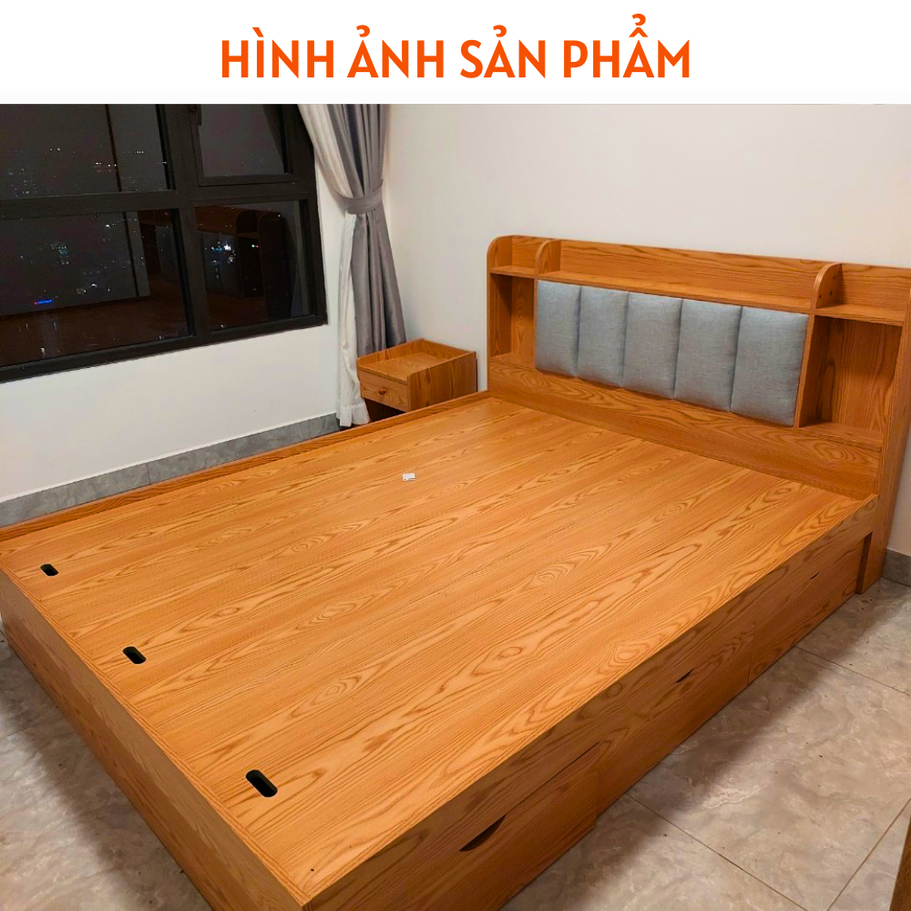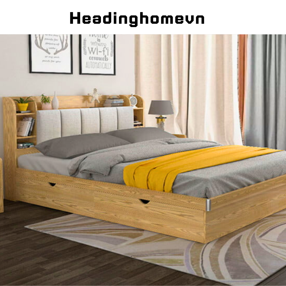 Giường ngủ gia đình cao cấp đầu giường bọc đệm làm bằng gỗ MDF – HH217