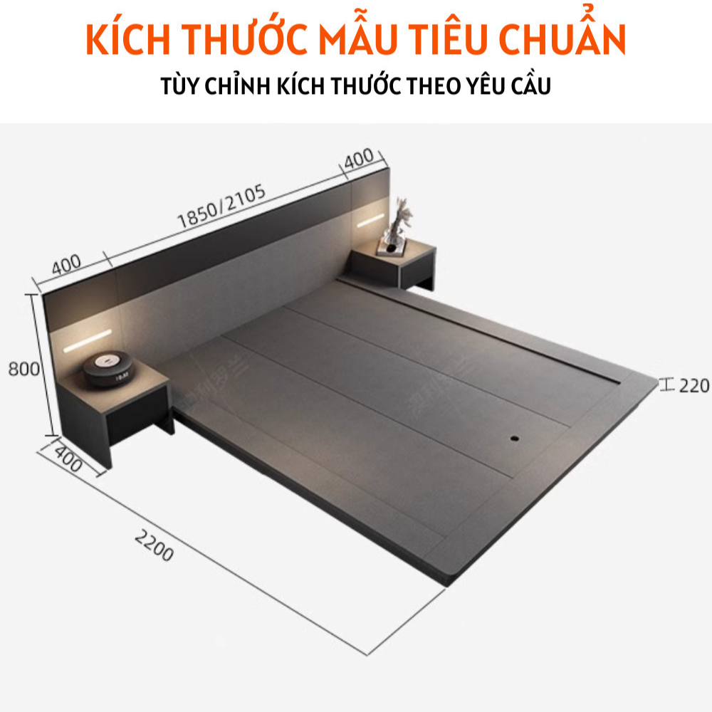 Giường Ngủ Phong Cách Nhật Bản Kèm 2 Tab Đầu Giường Hiện Đại – HH201