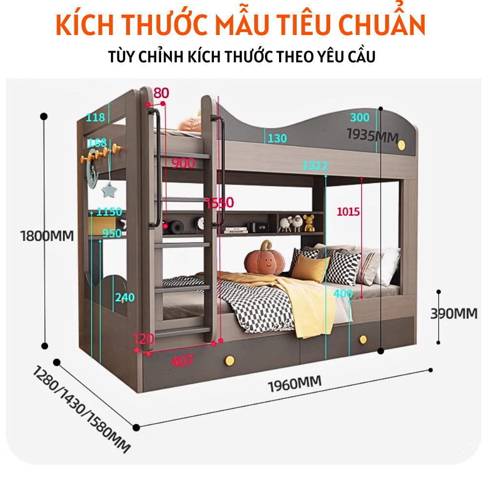 Giường tầng trẻ em bền đẹp chắc chắn, gỗ MDF xanh cao cấp chịu tải lớn – HH1203
