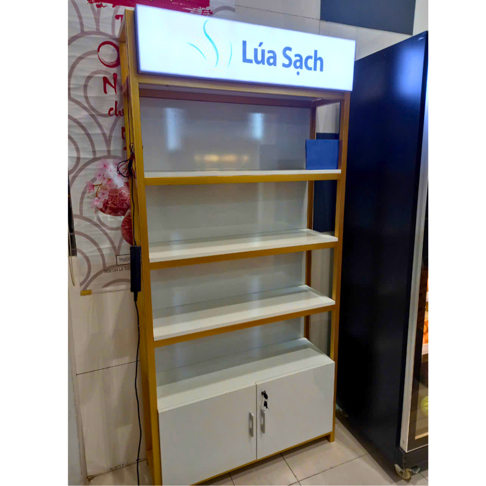 Kệ tủ trưng bày sản phẩm thiết kế mới, kết hợp gỗ MDF và khung sắc chắc chắn HB305