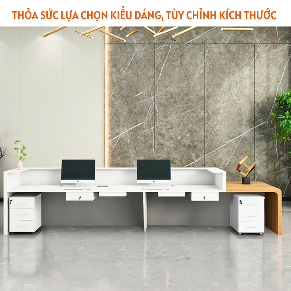 Quầy lễ tân khách sạn HB229 là điểm nhấn đầu tiên khi khách bước vào sảnh, một mẫu quầy lễ tân đẹp không chỉ tạo ấn tượng đầu tiên tốt với khách mà còn làm tăng giá trị thẩm mỹ của khách sạn. Với thiết kế hiện đại và độc đáo, quầy lễ tân khách sạn đẹp mê đắm sẽ mang lại cho khách một cảm giác sang trọng và đẳng cấp. Quầy được chế tác từ chất liệu gỗ MDF cao cấp, được chọn lọc kỹ càng để tạo nên một bề mặt mịn màng. Nếu bạn cần thêm thông tin về mẫu quầy này thì hãy tham khảo bài viết dưới đây của chúng tôi nha!