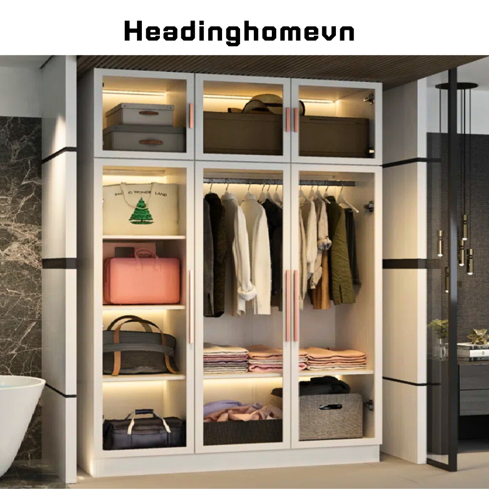 Tủ quần áo cánh kính cườn lực khung gỗ phong cách bắc âu độc đáo – HH410