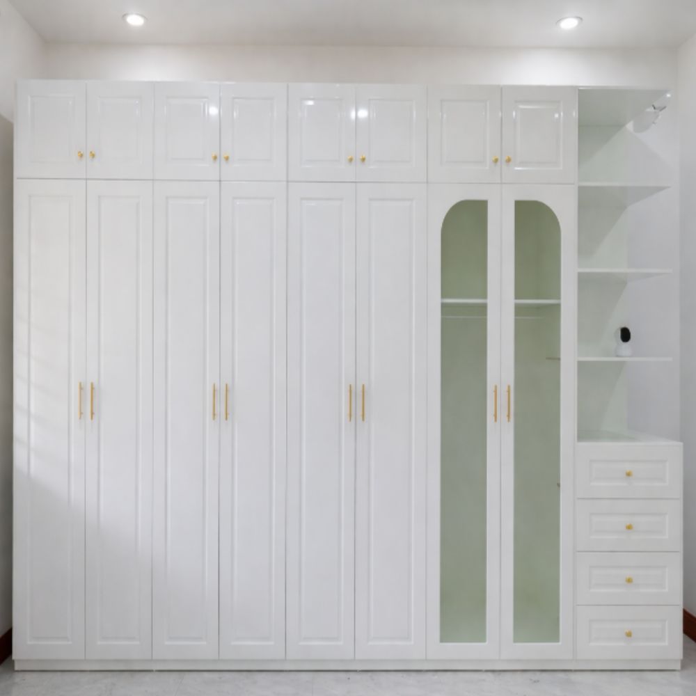 Tủ quần áo cửa kính khung gỗ phun sơn màu sắc trang nhã – HH417