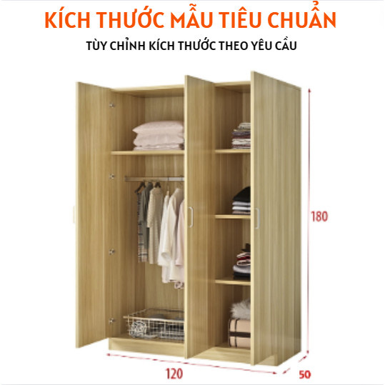 Tủ Quần Áo Gỗ 3 Cánh Mở Cho Gia Đình,Khách Sạn Làm Từ Gỗ MDF Nhập Khẩu - HH402 - Ảnh 4