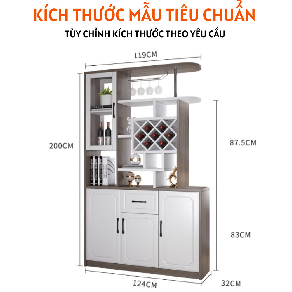 Tủ rượu phòng khách thiết kế tinh tế có thể làm vách ngăn – HH507 thiết kế đa năng, tiện nghi đảm bảo độ bền cũng như nhu cầu sử dụng của bạn và gia đình. Chất liệu gỗ MDF chịu lực tốt, chống cong vênh kết hợp phun sơn bệt giúp màu sắc tủ tươi sáng, tính thẩm mỹ cao. Cùng tìm hiểu thêm về mẫu tủ rượu phòng khách đang được ưa chuộng này nhé!