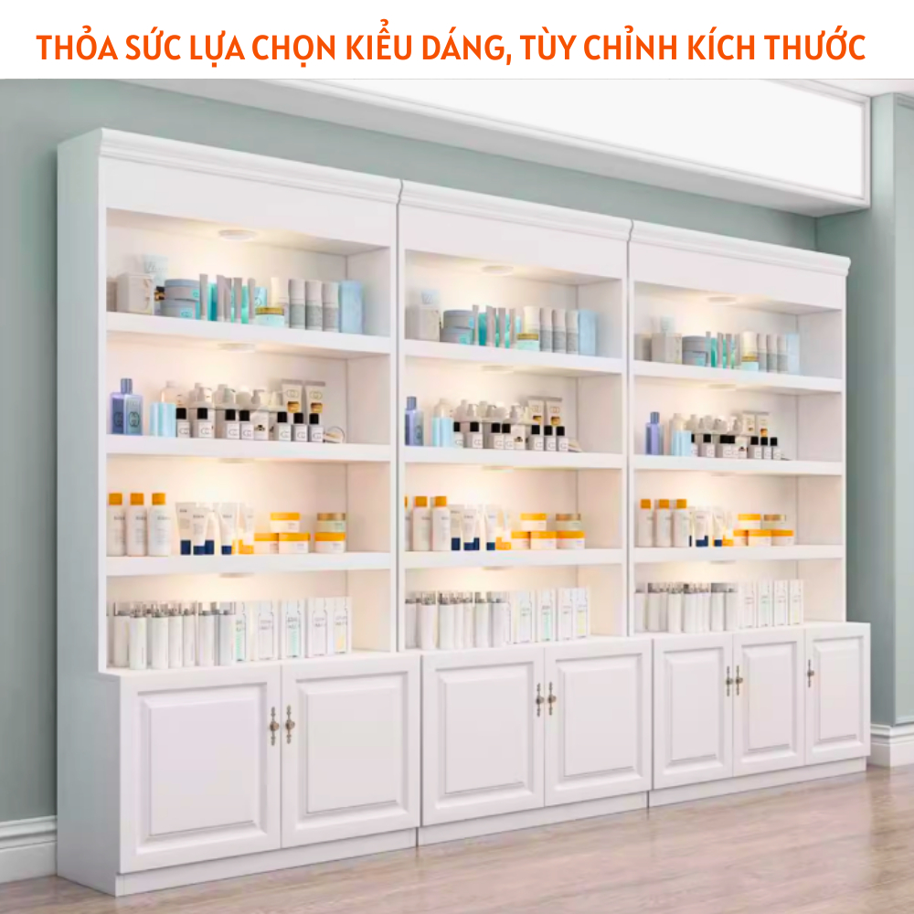Tủ trưng bày, tủ bán hàng mỹ phẩm bằng gỗ MDF kết hợp đèn led HB310